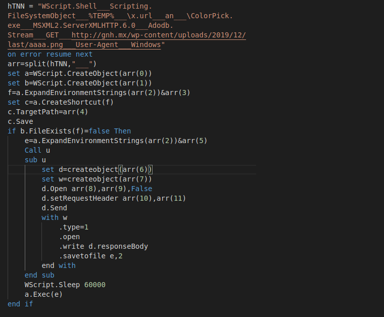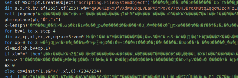 While in most cases, the final scripts responsible for downloading the TrickBot payload were identical and not obfuscated, in one case the script was slightly obfuscated: