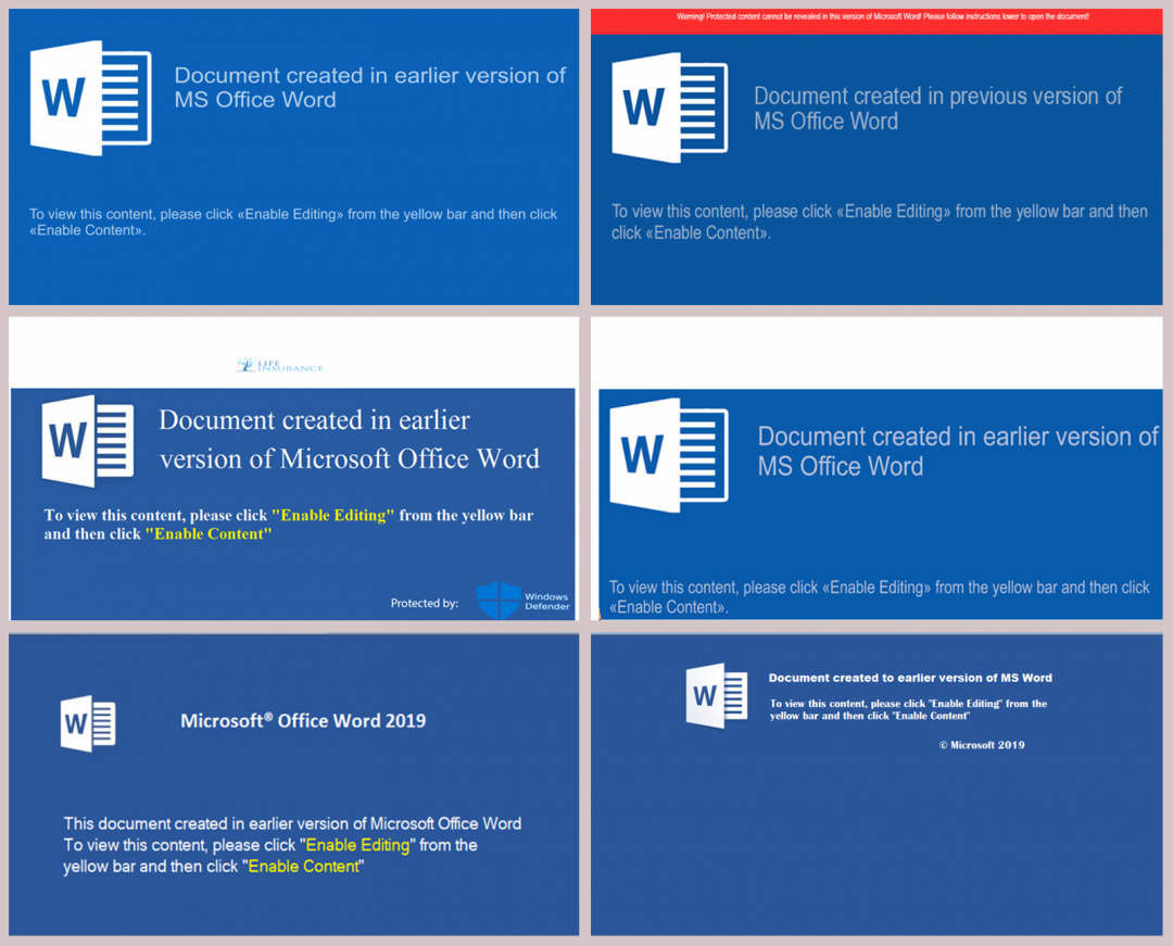 Image 9: Another set of templates used by downloader documents to lure the end users