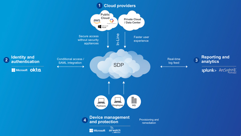 • Mobile device management (such as Intune, AirWatch, MobileIron, Good Technology): These solutions can be used to silently deploy SDP software onto endpoints so that all connectivity from iOS, Android, Windows, and Mac devices is based on zero trust.