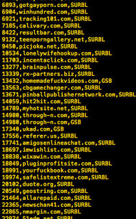 I wrote some scripts to check a number of the domains listed in the Alexa top 1 million against Google SafeBrowsing (GSB), SURBL, and to cross-reference with MalwareDomainsList (MDL). In the previous post, I mentioned a few of my findings related to GSB and SURBL lookups - particularly FakeAV. Additionally, a number of the sites listed included porn sites that were listed in SURBL due to their advertisements within spam links. Snippet of some of the results.