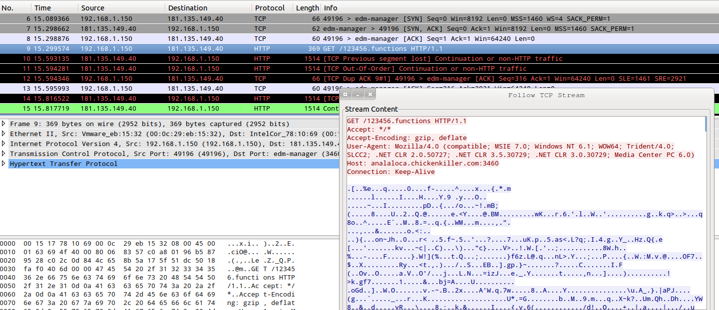- URL: hxxp://analaloca[.]chickenkiller[.]com:3460/123456.functions