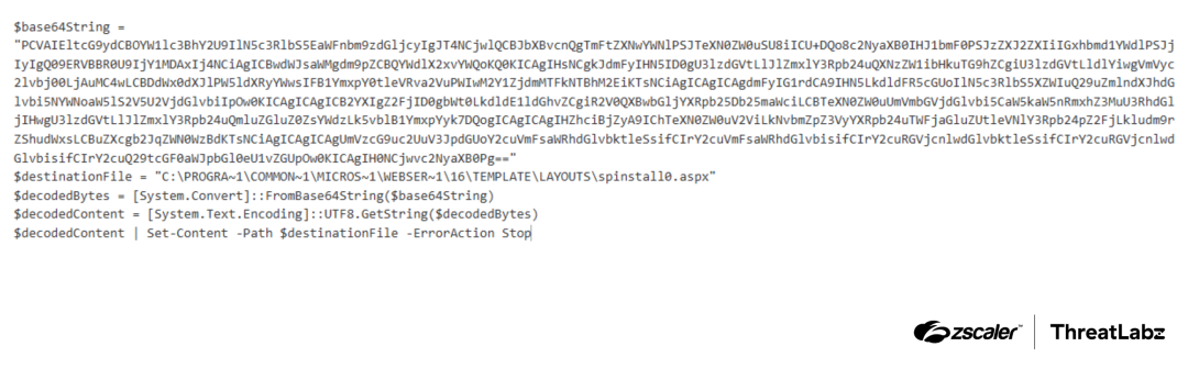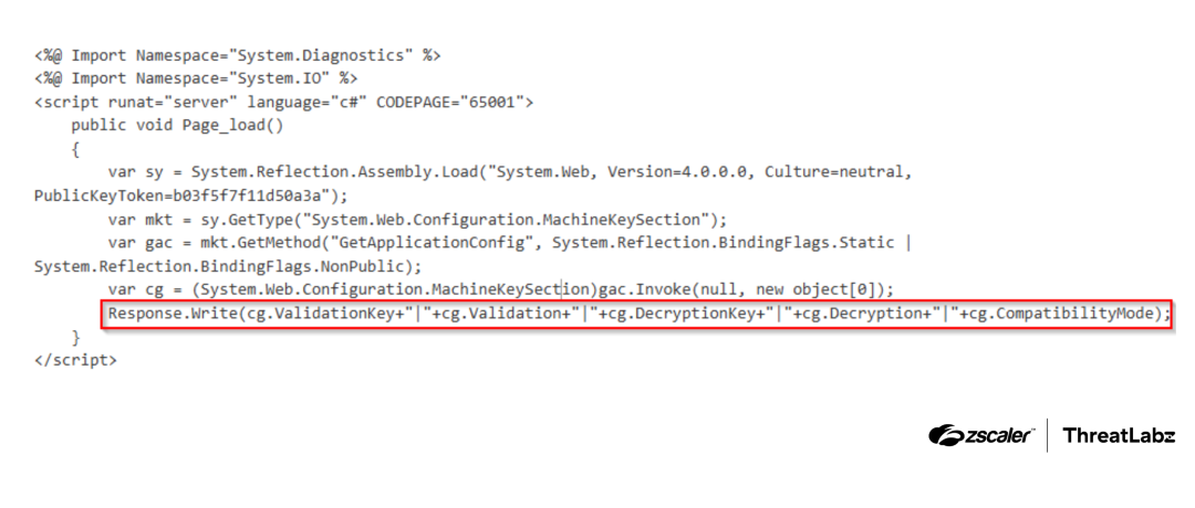 C:\PROGRA~1\COMMON~1\MICROS~1\WEBSER~1\16\TEMPLATE\LAYOUTS\spinstall0.aspx. - When decoding the saved content, the purpose of the script becomes clear: stealing cryptographic ValidationKey from the SharePoint server, as shown in the figure below.