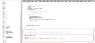 In this particular screenshot, you can see functions which are using phone services for making calls to the premium numbers in order to generate revenue as the numbers would be controlled by the attackers and earn a small payment for each call made.