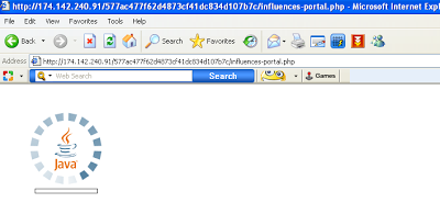 When accessed, the above exploit URL executes obfuscated JavaScript and loads an applet into the browser as shown below: