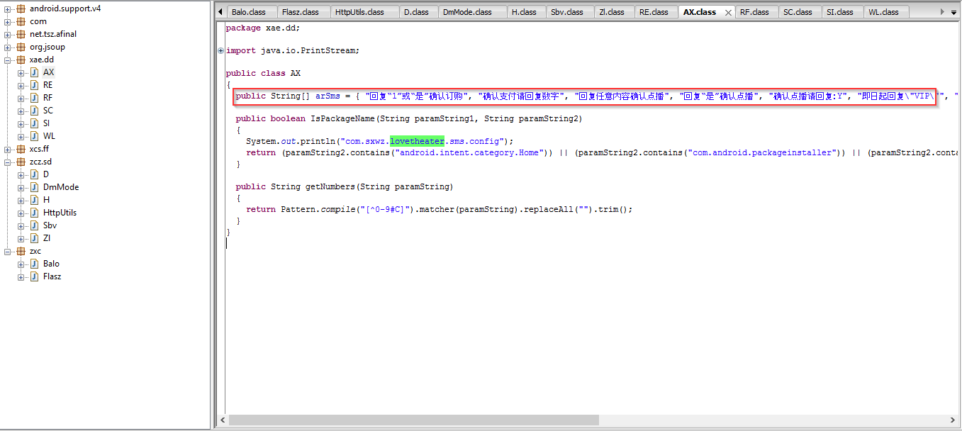 This jar file consists of a Dex file which is capable of running on the infected mobile device as seen below: