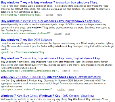 I decided to check how spam pages for "Buy Windows 7 key" (or its translation) are displayed in the first two pages (20 results) for various search engines. For reference, the numbers for the 3 main search engines in the US are: