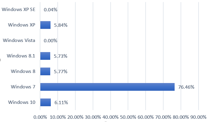We also looked at the distribution of Windows operating systems of the infected hosts and found that a vast majority of them (76 percent) were running Windows 7.
