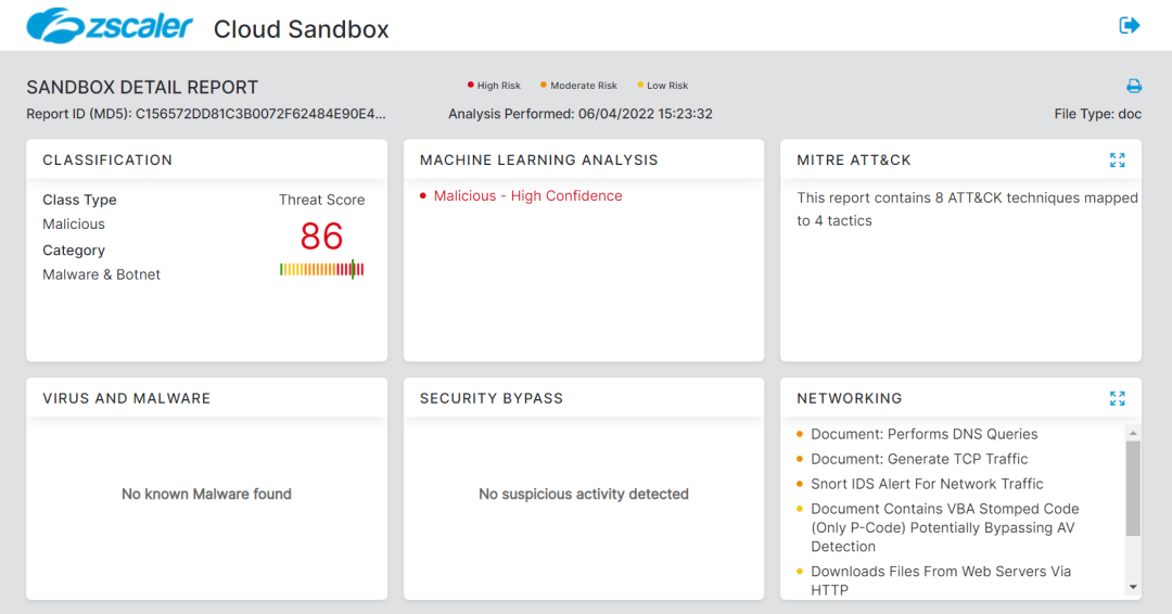 Zscaler Cloud Sandbox detection