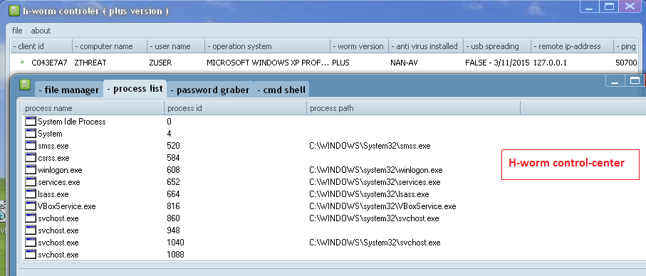 We continue to see many new variants of H-Worm popping up in the wild. Below are the version strings from some of the active H-Worm variants we have been tracking in 2015: