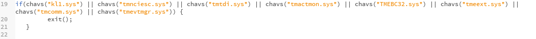 Nuclear EK's landing page checks for the following antivirus (AV) driver files and if finds any, terminates the exploitation process. We have seen these checks before in RIG EK too.