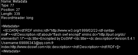 The Flash file was found to be encrypted using the DoSWF flash encryptor.