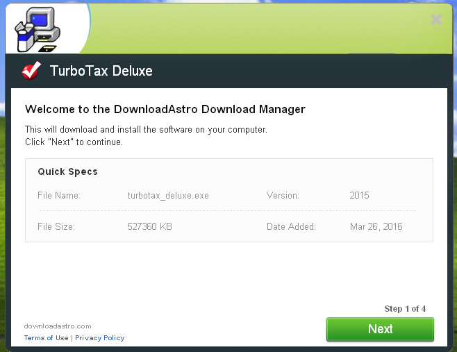 In addition to the e-mail based threats the IRS warned of (which we will detail below), we have found some fake downloads for commonly-used tax software such as TurboTax. These "Download Manager" packages rely on search engine poisoning combined with unwary users looking for a way to download tax software, even if it may not be completely legal.