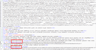 The iframe loads the landing page, which features obfuscated JavaScript and random-looking text blocks. It turns out that some of the random looking text blocks are actually obfuscated components that the JavaScript eventually deobfuscates and executes.