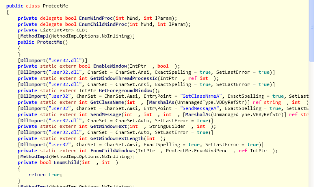 The malware monitors application like Task Manager, Process Explorer, and Process Hacker. It uses GetForegroundWindow() API to get the handle of active window and changes it's functionality if process is from the above list.