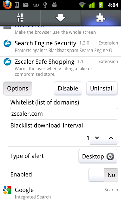Install Zscaler Safe Shopping add-on for Firefox 4 Mobile