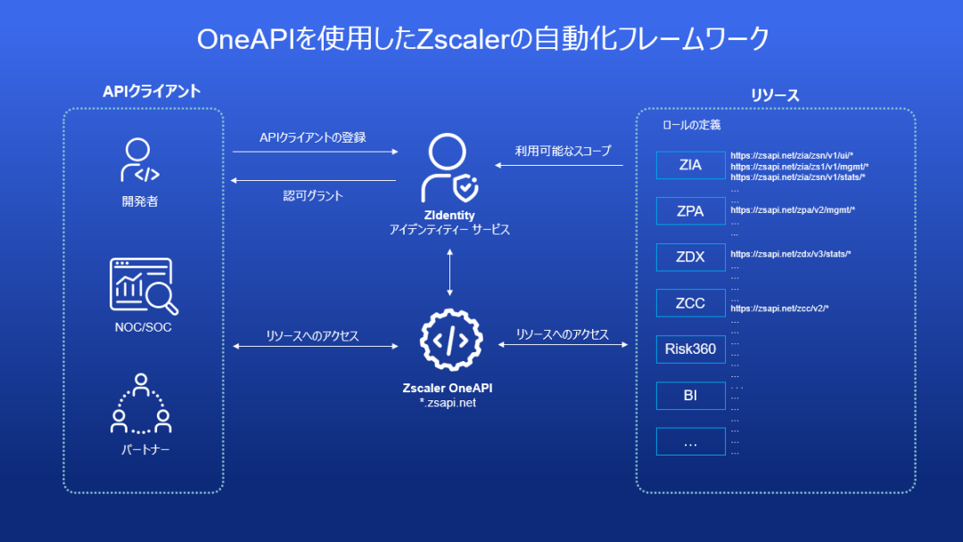 Zscalerでは、「OneAPI」をキーワードにAPIの標準化を進め、管理者やIT担当者向けに自動化された運用を実現するためのAPIを提供します。ZscalerのOneAPIフレームワークでは、適切な人物に適切なリソースへのアクセス権を付与し、合理化されたプロセスが適用されます。本セッションでは、その詳細について詳しくご説明します。