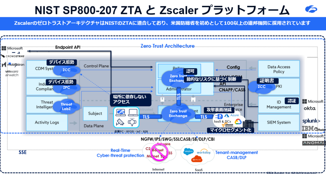 弊社のプラットフォームであるZero Trust ExchangeはNIST SP800-207 のZTA(Zero Trust Architecture)に適合したアーキテクチャを採用しています。