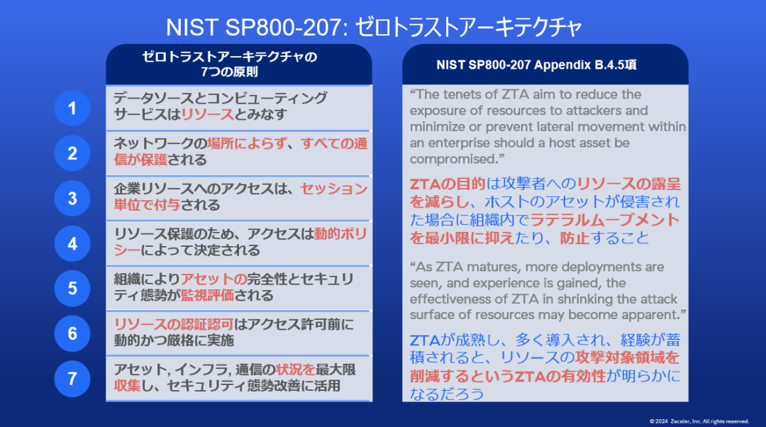 またNIST SP800-207では7つの原則を確認する事ができます。