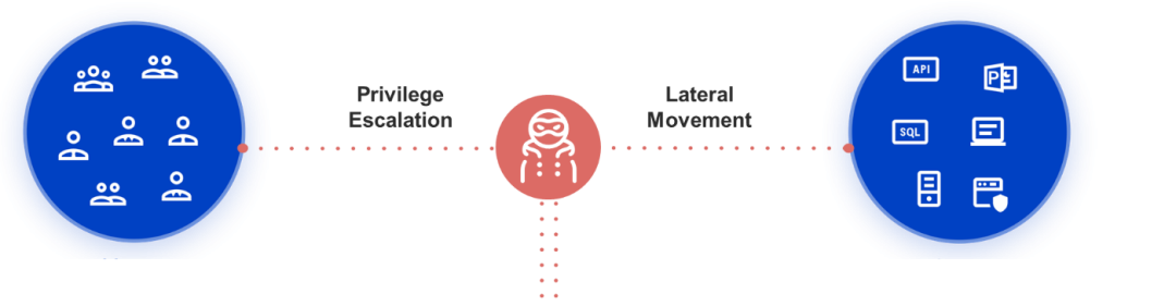 Figure 1 – Using privilege escalation, an attacker can move horizontally, gaining access to other user or service accounts, or vertically, gaining greater access via power users or administrators to gain access to the crown jewels and exfiltrate data