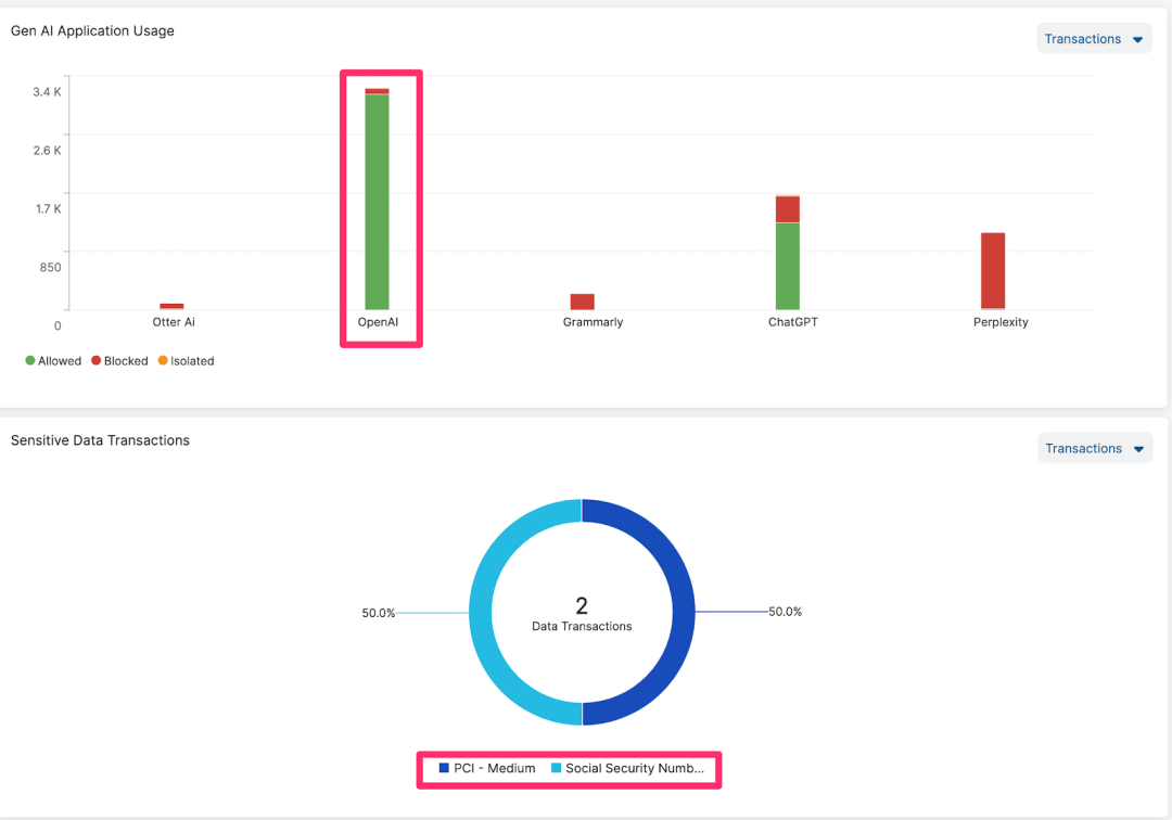 Figure 8: GenAI dashboard to track sensitive AI data flows