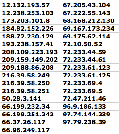 Tracking the observed infections back over time, I was able to track a fairly robust set of IPs and domains used to keep the botnet alive. Below is the information that I saw since March 10: