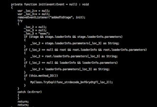 When the program execution starts, the ActionScript looks for the input parameters and based on it, sets a variable which is then sent to the main exploitation routine as seen below: