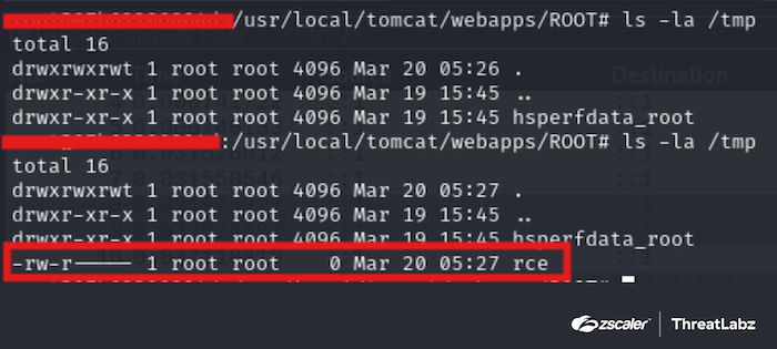 Figure 4: RCE command from malformed request is executed.