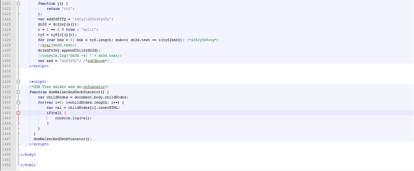 De-obfuscated code obtained from ‘domWalkerAndDeobfuscator’ through console.log for Feista EK: