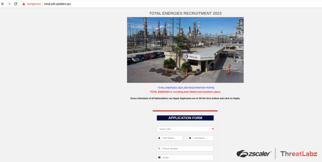 Fig 10 - Fake Total Energies recruitment scam page