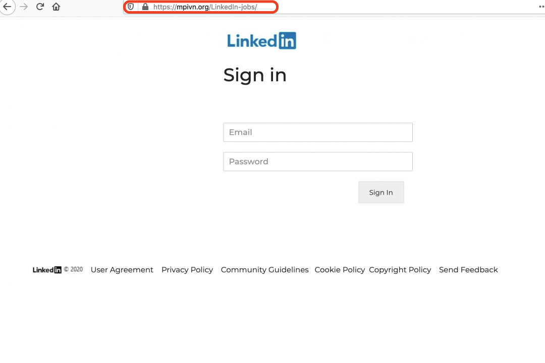 Credential phishing site URL: hxxps://mpivn.org/LinkedIn-jobs/