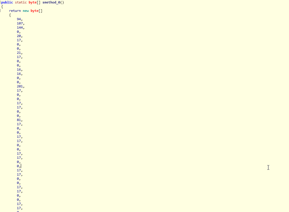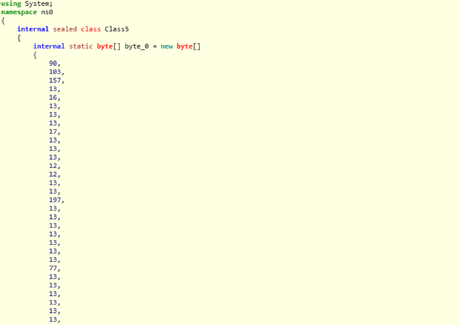 Figure 7: The byte array to be decoded and loaded by Assembly.Load().