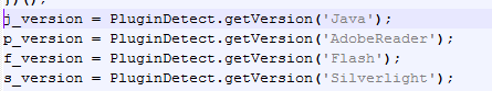Subsequently, the script will also check the version of well-known browser plugins, which includes Java, Adobe Reader, Adobe Flash, and Silverlight.