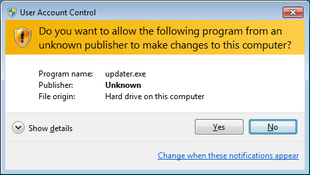 You have likely seen the use of code signing certificates when Windows pops up a User Account Control (UAC) warning to ask for your permission to make a change to your system. If the executable is signed by a Trusted code signing certificate, the UAC will display a "Trusted Publisher" notice, otherwise it will display an "Unknown Publisher" notice.