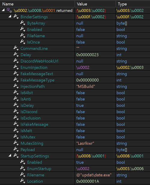 The protobuf structure is largely self-explanatory with respect to the capabilities of the PureCrypter injector. Table 1 shows a summary of the most relevant fields.