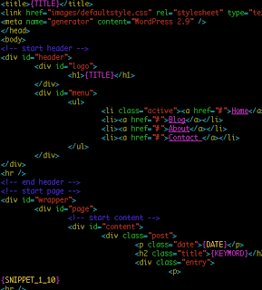 Here is a snippet from the SEO template page, that builds pages appearing to be WordPress 2.9 blog pages (but will redirect victims to the FakeAV page listed in the data.dat file).