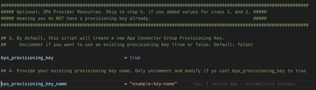 2. Optionally, if you already have an existing provisioning key, you can simply enable the corresponding variables identified by the byo (bring-your-own) prefix.