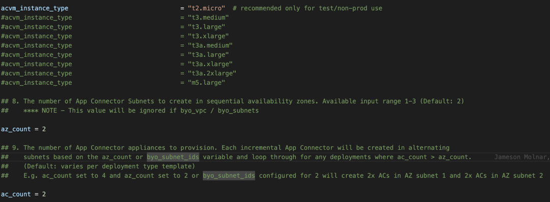 2. In this section you can choose the instance type, number of Availability zones, and number of App Connectors to be deployed. By default, the module will deploy a pair of m5.large instances unless explicitly defined otherwise.
