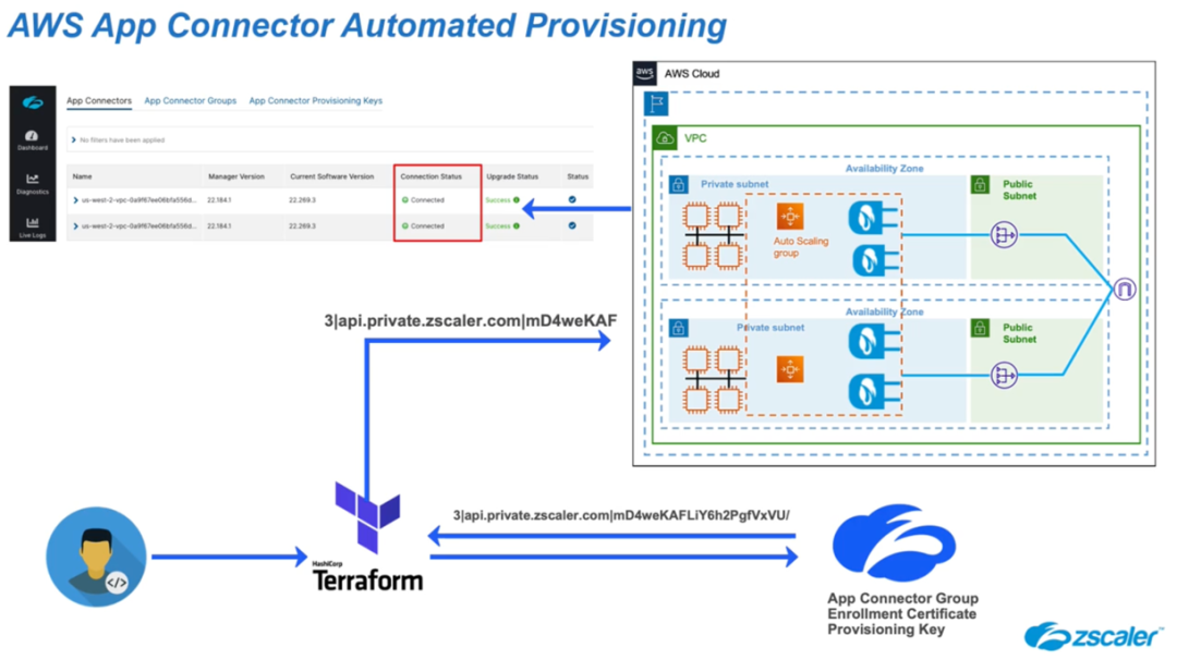 Zscaler offers terraform modules to facilitate the scalable deployment of ZPA App Connectors. These modules are combined with the ZPA Terraform Provider, which enables administrators to perform a complete infrastructure onboarding on Day Zero, by automatically creating or reusing existing App Connector Groups and Provisioning Keys. The module also provides enough flexibility to allow users to scale by easily increasing the number of App Connectors depending on their type of deployment.