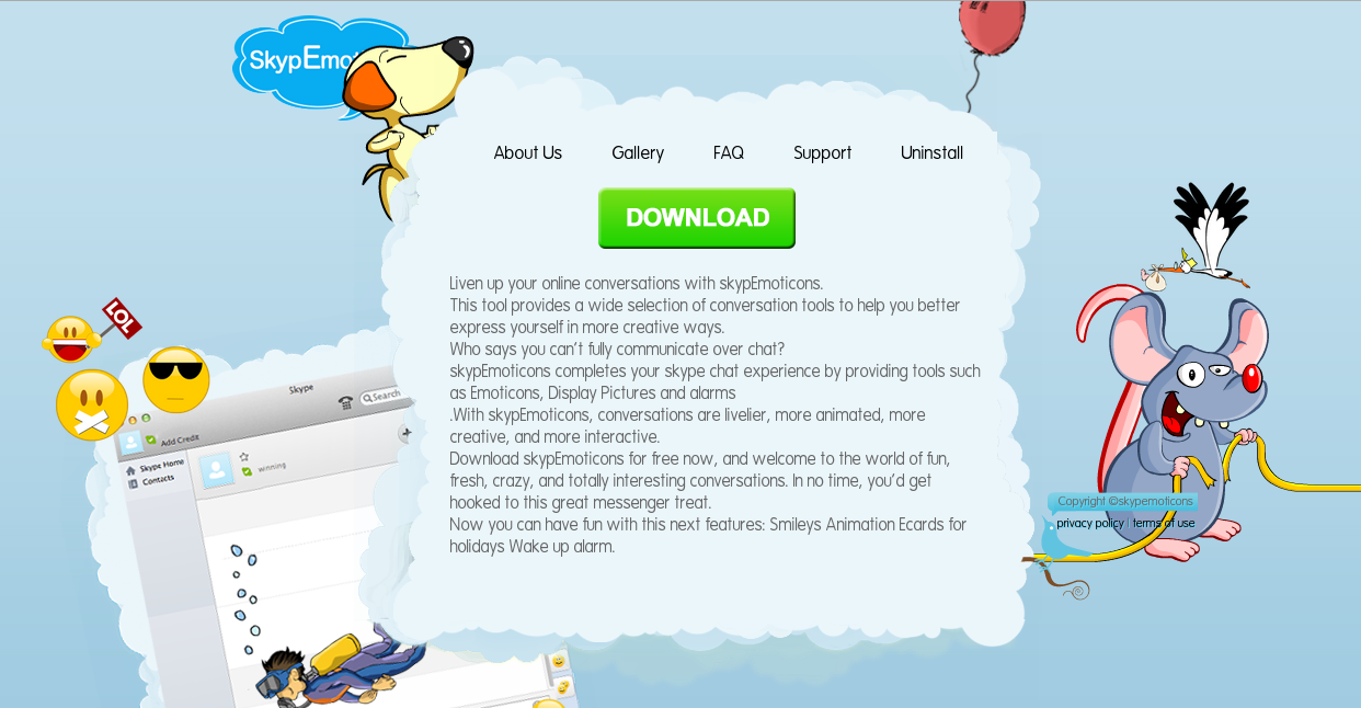 | Home page of hxxp://skypemoticons.com/ |
