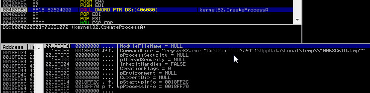 The DLL is registered with regsvr32.exe via the following command to ensure persistence: