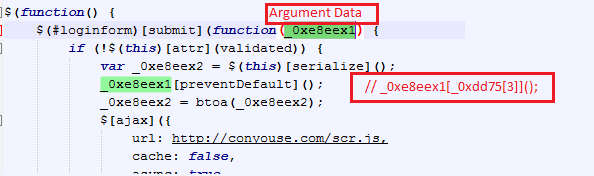 The variable “_0xdd75” stores a list of strings which are used dynamically in the JavaScript above.