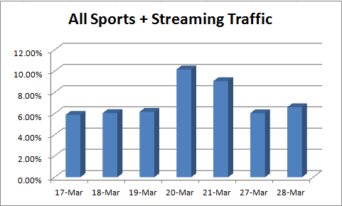 | The typical amount of Sports Streaming data doubles during the first Round. |