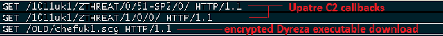 Here is a sample list of HTTP requests that will provide a good indication of an Upatre and Dyreza compromise on your network: