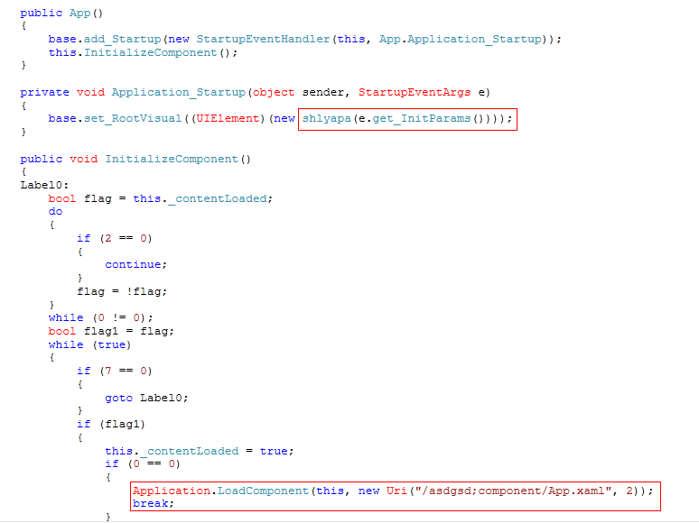The screenshot below shows the entry point routine asdgsd.App. The constructor of asdgsd.App is used to call the shlyapa class.