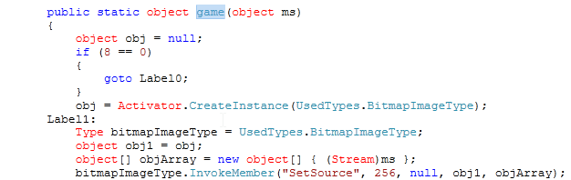 • The function "huts" is leveraging CVE 2013-3896 (A memory disclosure vulnerability in the public WritableBitMap class) to calculate the base-address of "mscorlib.ni.dll" as seen below: