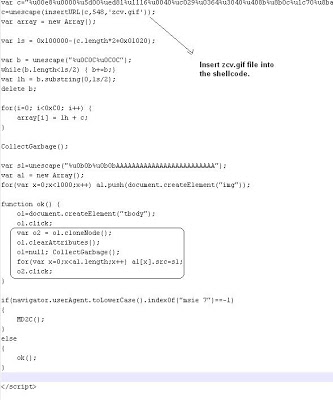 ImageFrom the above code, it is clear that it is targeting the ADODB.Stream vulnerability from 2003. Here is the other part of the decoded content which exploits the MS09-002 vulnerability.