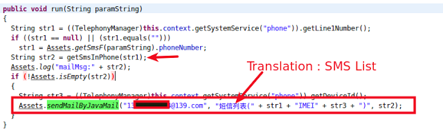 MailTask's main role is to collect contact information from the victim's device and send it to attacker via the same functionality explained in case of SmsTask.