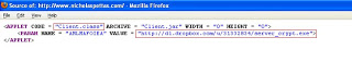 Recently I blogged about how attackers are forcing users to download fake codecs to spread malicious content. I’ve also encountered across another drive by download attack vector, which uses Java applets to execute downloaded malicious content on the victim’s machine. Download and execution of malicious content happens without user interaction. Let’s take look at a screen-shot of the malicious URL “hxxp://www.nicholaspettas.com/”,